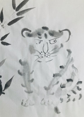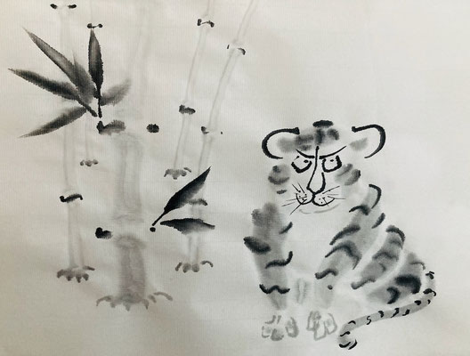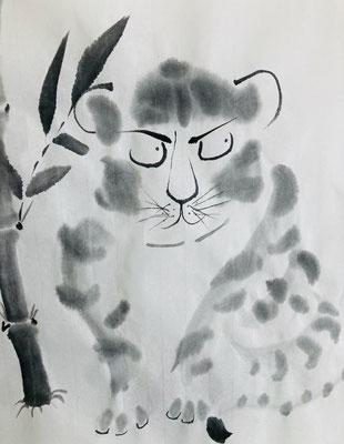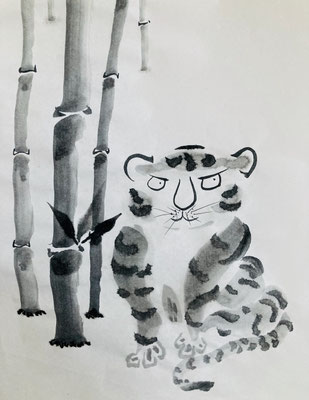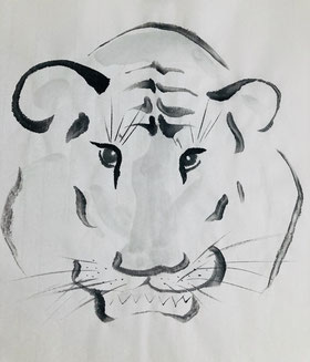 Ebenso mutig und kraftvoll werden wir den Pinsel in unsere selbstgeriebene Tusche tauchen und mit freien und wilden Pinselstrichen kleine und große, gefährliche und freundliche Tiger auf unser Papier zaubern.